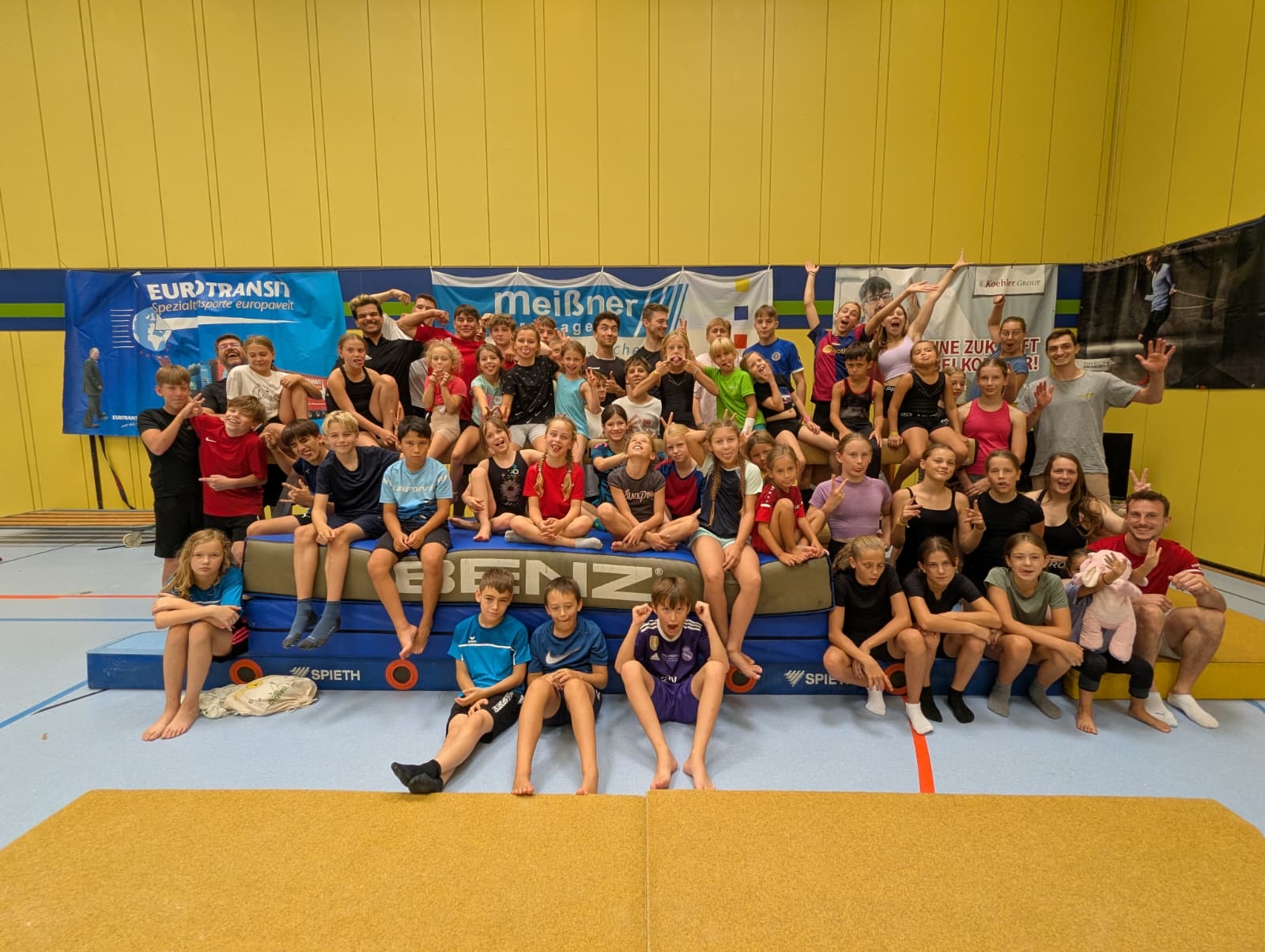 Gleich am Freitagmorgen startete das Camp mit einer herzlichen Begrüßung und einer ersten Entdeckungstour durch die Halle – inklusive eines riesigen Trampolins, das sofort alle Herzen eroberte. Unsere Scherzheimer Kinder waren begeistert von den Möglichkeiten, in einer echten Bundesliga-Halle zu trainieren.
